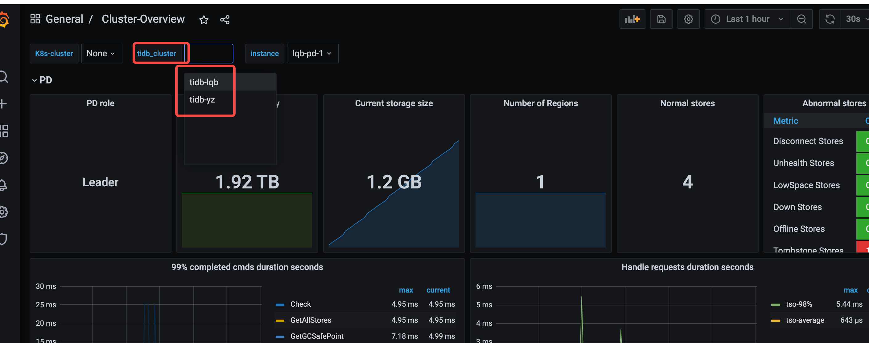 [root@k8s-master monitoring]# kubectl port-forward -n tidb svc/basic-grafana 3000:3000 &>/tmp/portforward-grafana.log &