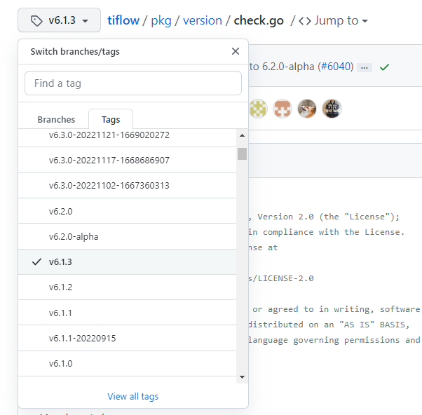 例如:通过切换标记到 6.1.3,可查阅相关的最小兼容信息,如下所示: