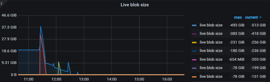 tikv的TitanDB-Kv中的Live Blob Size监控项有点古怪,全部是负数 都是-200GB的样子。