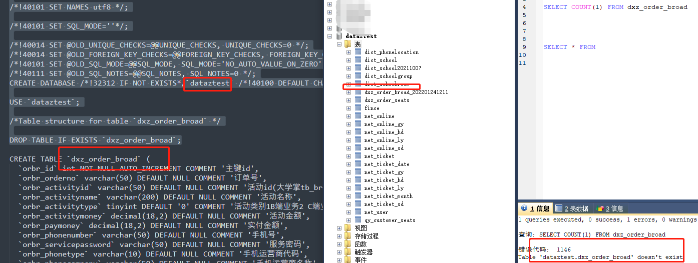 把create table的语句直接在客户端运行呢,表都没有建成功。