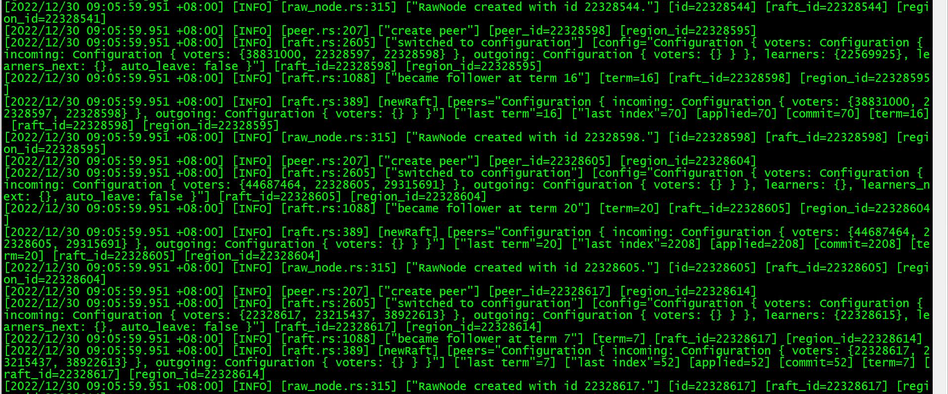 【遇到的问题:问题现象及影响】生产环境目前6台Tikv服务器,先再扩容13台tikv,26日下午进行扩容的,当时一切正常,后面为加快速度调整部分参数,但是从昨天开始其中有二个节点反反复复重启一直到现在。