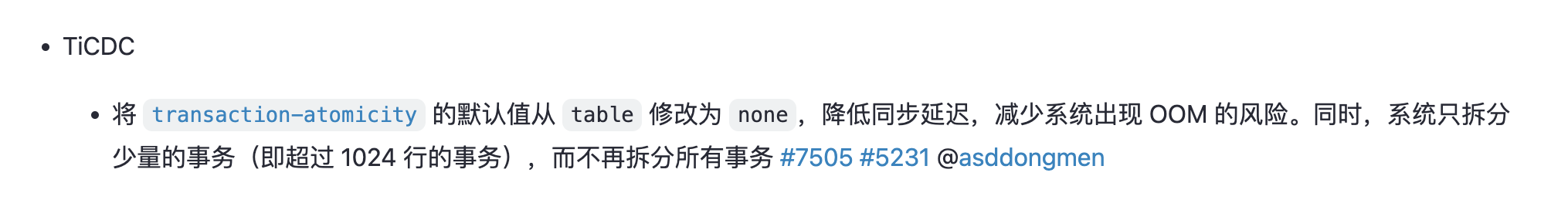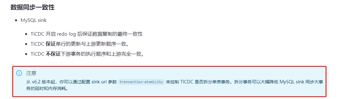 应该不是拆分大事务的配置问题,6.5 默认是拆分大事务的,不需要配置。
