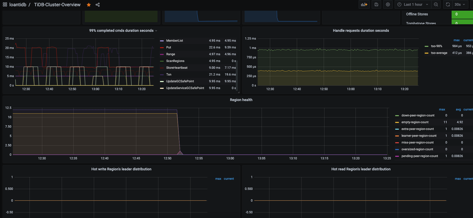 重启了tidb后,监控界面其他都还显示,但是pending-peer什么的没显示了: