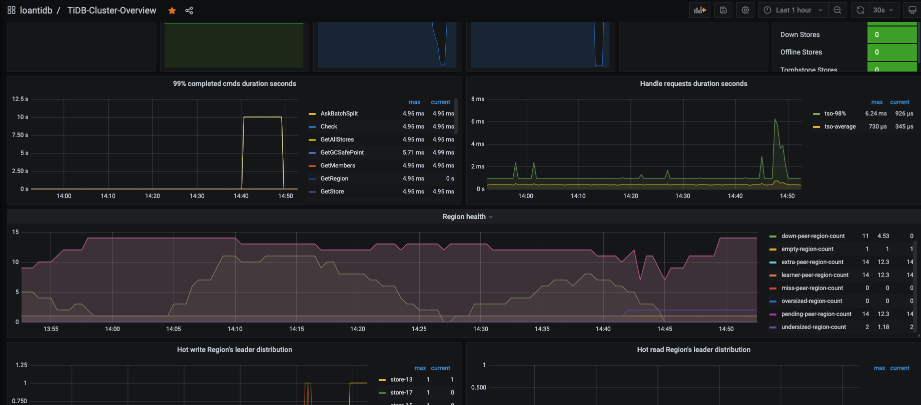 并且我给一段时间执行region check pending-peer后的内容都是不一样的,但是pending-peer的条数都是14条,也不知道里面在干什么。集群只是每天会定时导入数据,大部分时间都是空闲的。