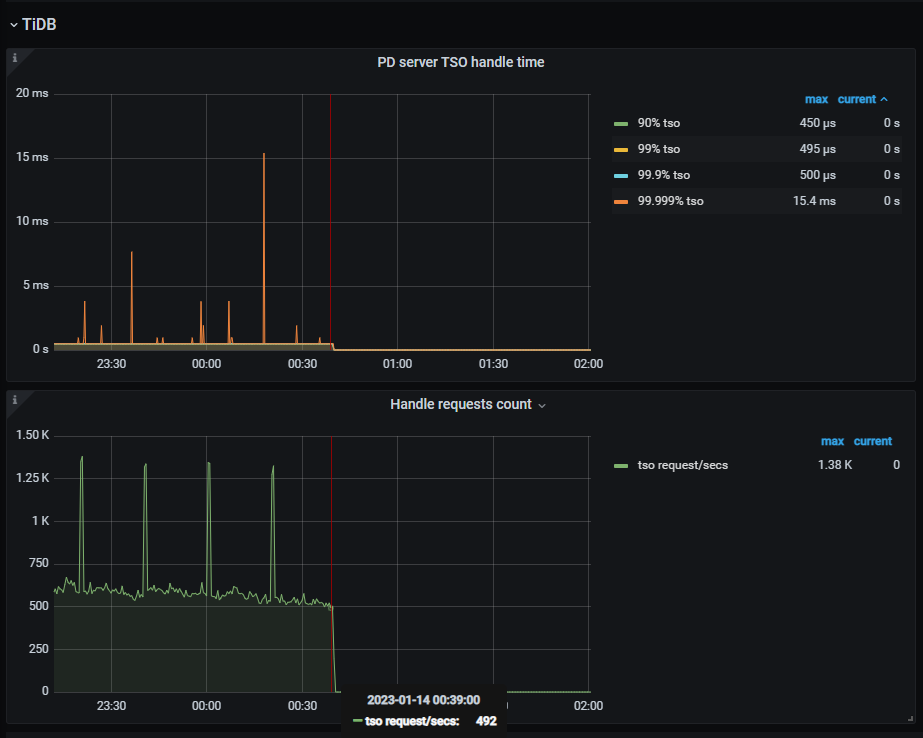 但是从tidb pd 的请求上看,一直到0:39,都是有在处理tso请求的。