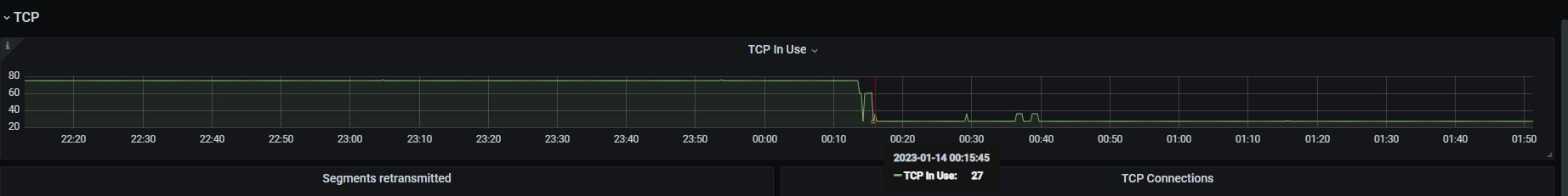 另外确认这个时期,网络确实没有问题,只是0:15的时候Tcp连接数降了(ticdc先行挂掉了?)