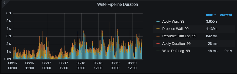 写入主要是 raftstore 线程 propoase/apply wait 长尾延迟高,可以按楼上建议的,根据当前 cpu 和 io 资源情况,先调大这两个线程池