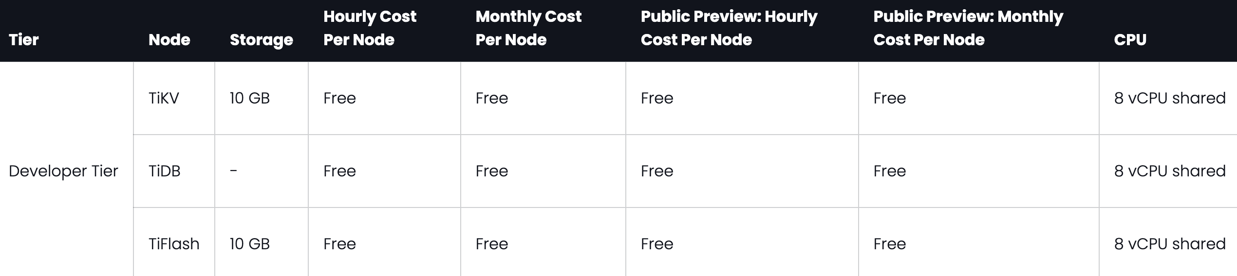 我在用 tidbcloud 的 devtier,8vCPU + 10GB SSD,应该是最弱的了,也是最便宜的了吧。